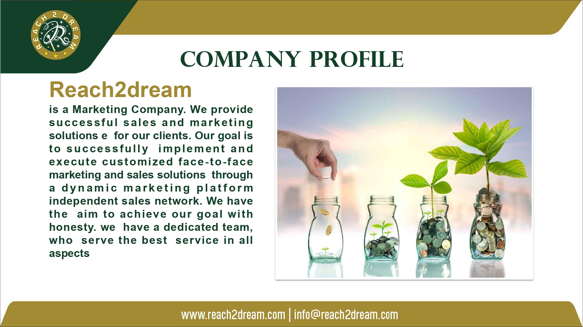 Reach 2 Dream Thinzar Wellness Network Private Limited Company. It aims to bring happy and prosperous life to millions of people by forming meaningful, long lasting and mutually rewarding business association.